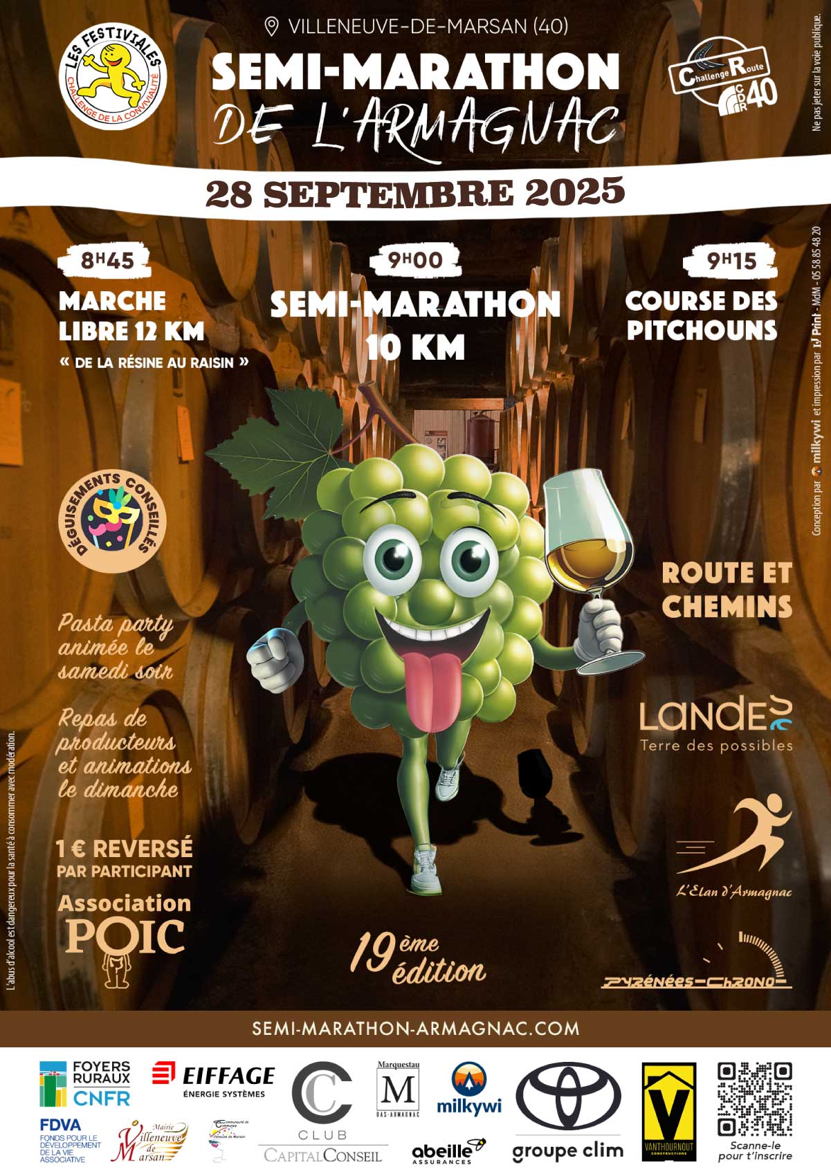 Le dimanche 28 septembre 2025, vous aurez le choix entre le semi-marathon, le 10 km ou la marche. Les plus petits ne sont pas oubliés puisque 3 courses seront au programme à proximité des arènes de Villeneuve-de-Marsan.